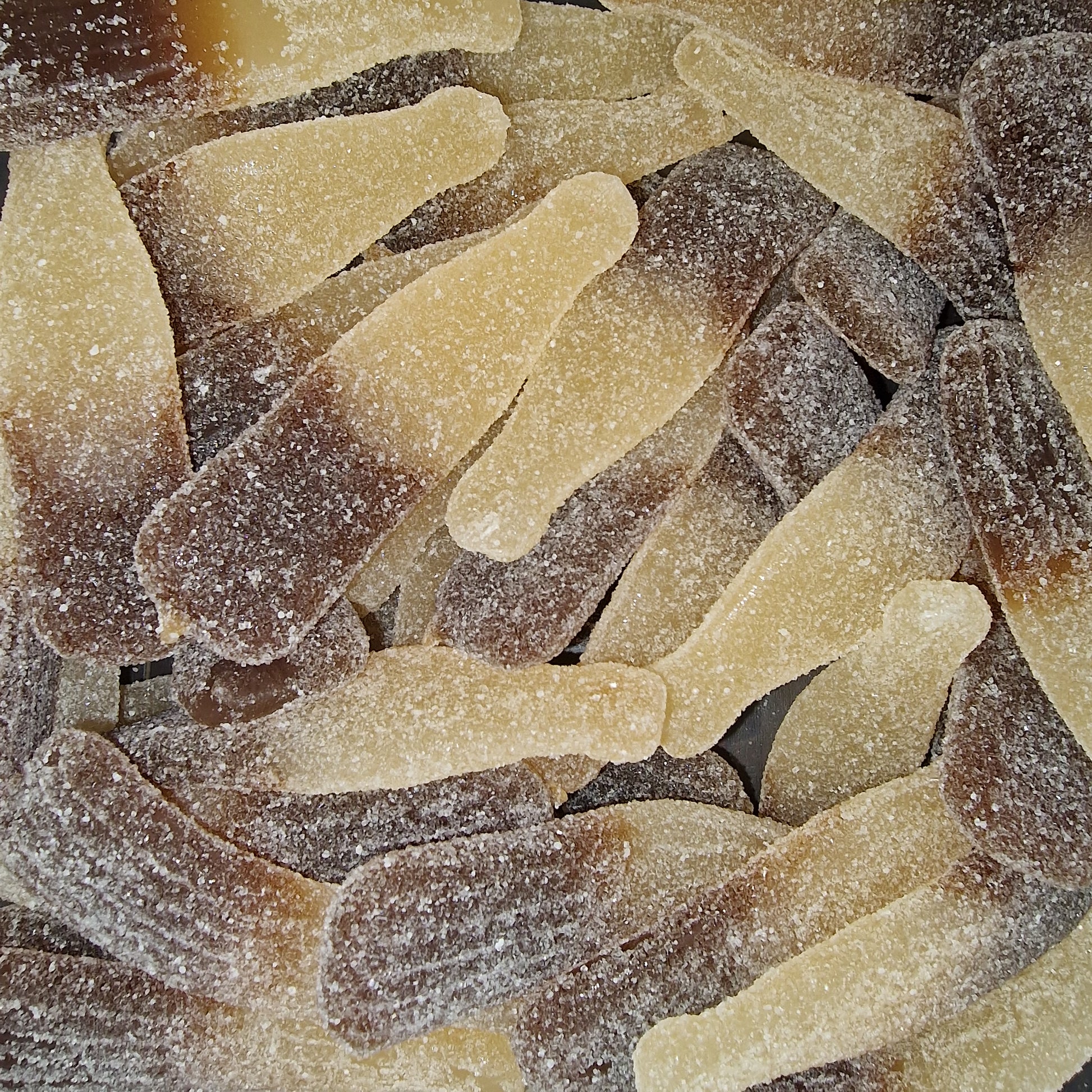 Glukosesirup, sukker, vann, biffgelatin (halal), modifisert potetstivelse, syre: sitronsyre, melkesyre, smaksstoffer, glaseringsmidler: bivoks, karnaubavoks, farger: E100, E129